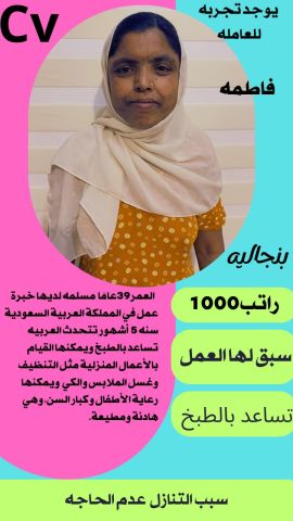 متوفر عماله منزليه وطباخات ومرافقين لكبار السن وعاملات نظافه ومربيات اطفال وكوافيرات وسائقين ومتاح التجربه لكل أنحاء المملكه والتجربة خير برهان ????????????????